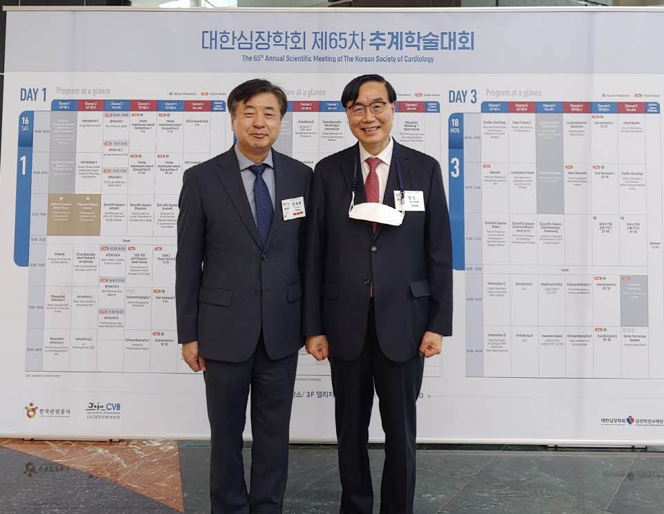 대한심장학회 제65차 추계학술대회 일시: 2021년 10월 16일 - 10월 18일 장소: 제주컨센변선테 및 화상회의 제주컨벤션센터에서 개최 중인 제 65 차 대한심장학회에서 고려의대 안태훈 회장님과 함께 기념촬영을 하였습니다.