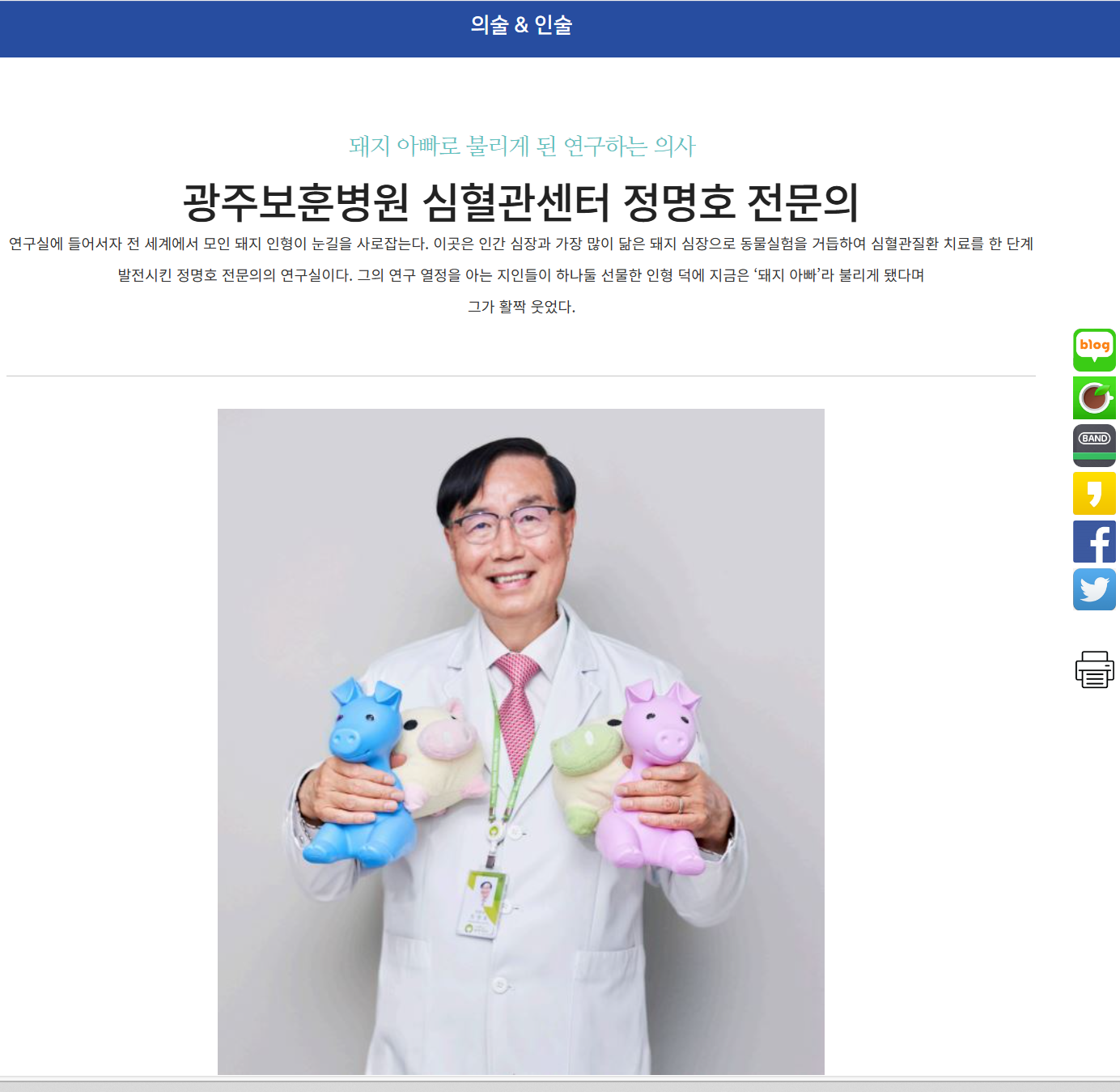 한국보훈공단에서 발행하는 webzine.bohun.or.kr 6월호에 돼지 아빠로 불리게 된 연구하는 의사로 소개되었습니다