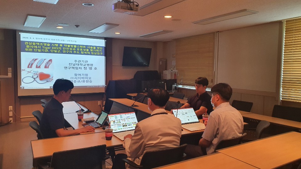범부처 전주기 의료기기 사업 - 온라인 평가 일시: 2020년 8월 4일 (화) 11:00 ~111:30 장소: 전남대학교병원 7동 6층 회의실 참석자: 정명호, 박준규, 김문기, 박대성 범부처 전주기 의료기기 사업 온라인 평가 무난히 잘 마쳤습니다. 후원해 주셔서 진심으로 감사드립니다.