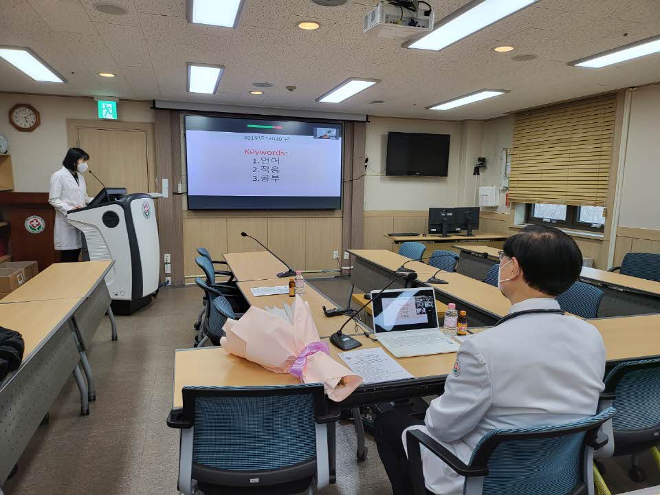 오늘 565 회 보건복지부 지정 심혈관계 융합연구센터 초청 특강에서는 중국 연변대학에서 전남대학교병원으로 의학박사 학위 취득을 위하여 연수를 오신 조정미 박사님께서 '슬기로운 연구 생활' 이라는 제목으로 의학박사 취득 기념 강의를 해주셨습니다.