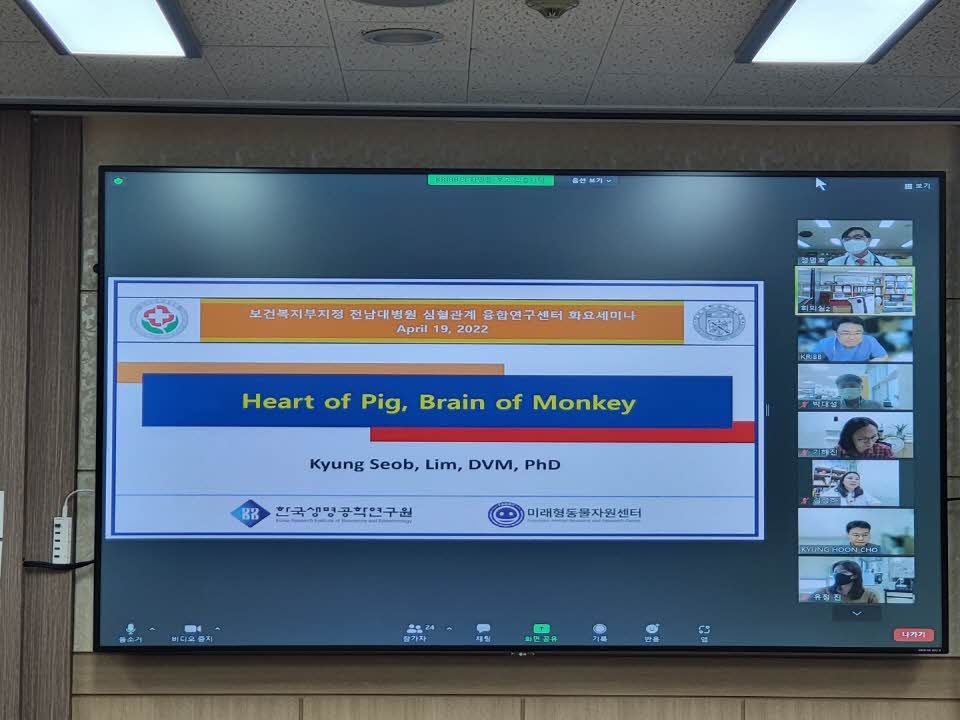 제 572 회 보건복지부 지정 심혈관계 융합연구센터 초청 특강에서 한국생명공학연구원 미래형동물자원센터 임경섭 박사께서 Heart of Pig, Brain of Monkey 라는 제목으로 명강의를 해주고 계십니다.