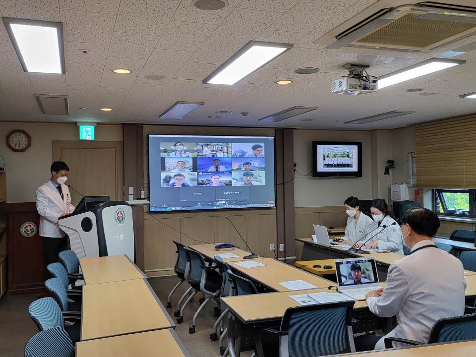 KAMIR-VI 연구자 모임 일시: 2022년 4월 20일 (수) 오후 5시 30분 ~ 장소: 전남대학교병원 7동 6층 회의실 및 화상회의 조경훈 교수님께서 발표 진행하여 주고 계십니다.