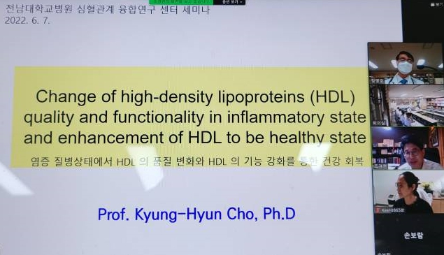 화요 초청 특강에서 영남대학교 조경현 교수님 께서 'Change of high-density lipoproteins (HDL) quality and functionality in disease state and enhancement of HDL to be health' 라는 제목으로 명강의를 해주셨습니다.