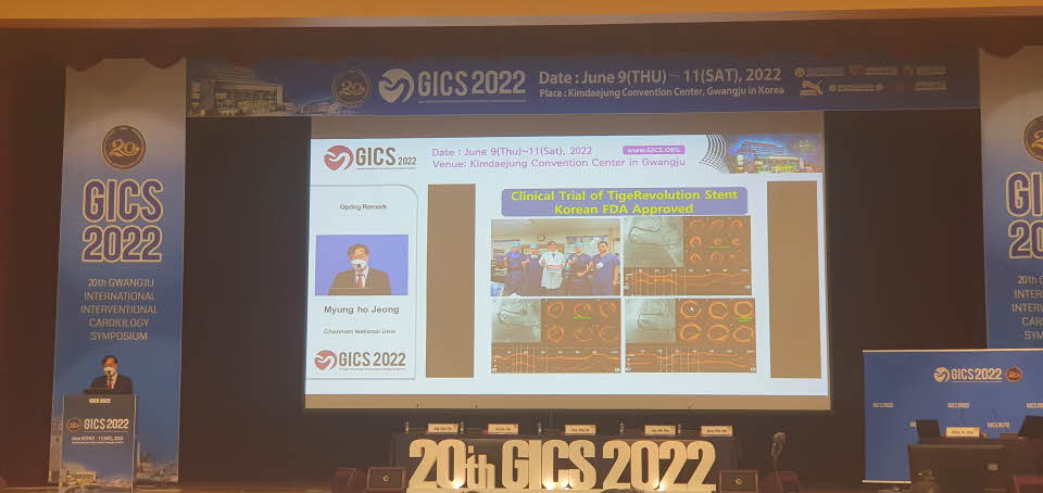2022-GICS (20차 Gwangju International Interventional Cardiology Symposium) 일시: 2021년 6월 9일 (목) ~ 11일 (토) 장소: 광주 김대중 컨벤션 센터 정명호 교수님께서 비폴리머 약물 방출 스텐트 (TIGERevolutioN)를 소개하여 주고 계십니다. 진심으로 감사드립니다.