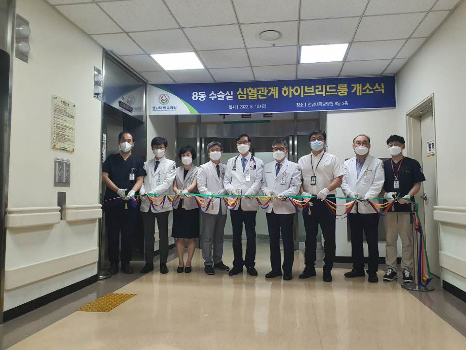 오늘 아침 전남대학교병원 응급센터 (8동) 수술실 내에 설립한 심혈관계 하이브리드 룸 개소식을 개최하였습니다.