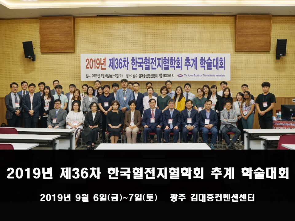 2019년 제 36차 한국혈전지혈학회 추계 학술대회 일시: 2019년 9월 6일(금)~7일(토) 장소: 광주 김대중컨벤션센터