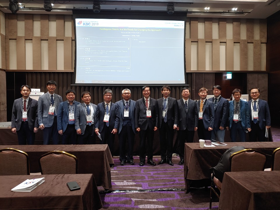 2019년 대한심장학회 첫번째 세션 'Asian AMI guideline' 좌장 후에  일본 Dr. Yasuda, 중국 Liu Bin 교수, 홍콩 Dr. Wong 과 함께 기념촬영을 하였습니다.