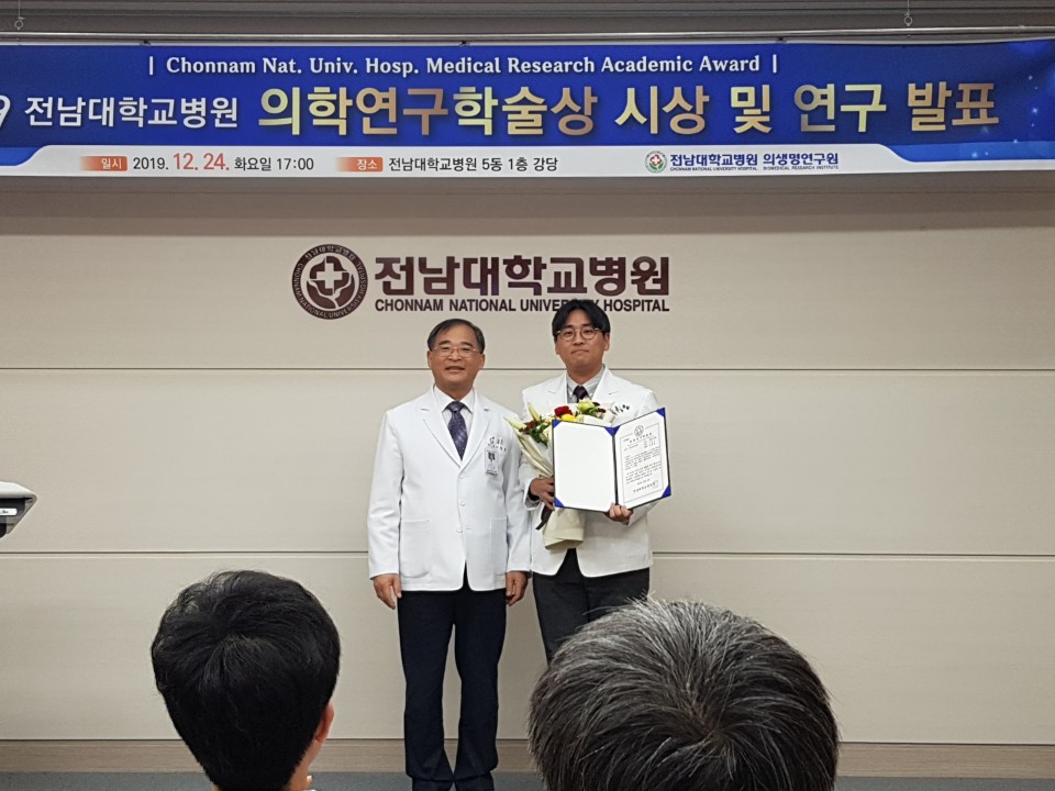 2019년 전남대학교병원 최다논문상 수상 일시: 2019년 12월 24일 화요일 17:00 장소: 전남대학교병원 5동 1층 강당 김용철 교수님의 2019년 전남대학교병원 최다논문상 수상을 진심으로 축하드립니다.