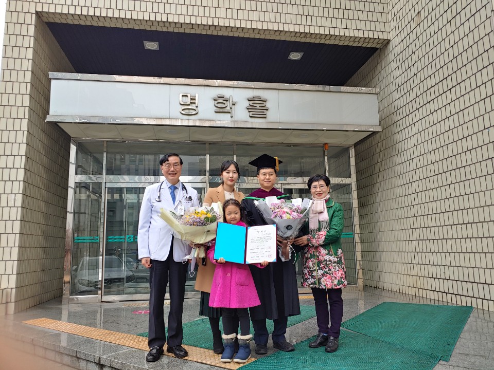 코로나 바이러스로 졸업식이 열리지 않아 의학박사를 취득한 조경훈 교수를 가족들을 모시고 조촐하게 축하해 주었습니다.