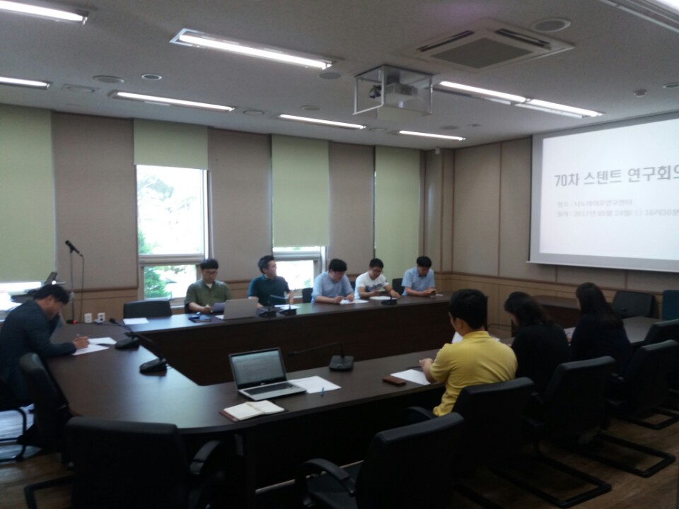 스텐트 연구회 70차 회의 2017년 5월 24일(수) 16:30 ~ 17:50 장성 나노바이오연구센터 1층 소회의실 [참석자] 김성현, 박준규, 김태훈, 손동희, 변대흥, 배인호, 심재원, 박대성, 이소연, 장은재 이상 10명