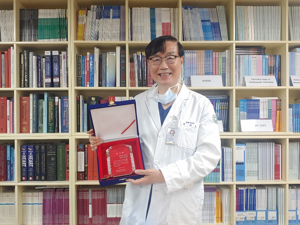 귀하께서는 2018년 11월 부터 2020년 10월까지 한국중재의료기기학회의 제 4대 회장으로서 본회의 발전에 기여하신 공이 크므로 감사의 뜻을 담아 이 패를 드립니다.