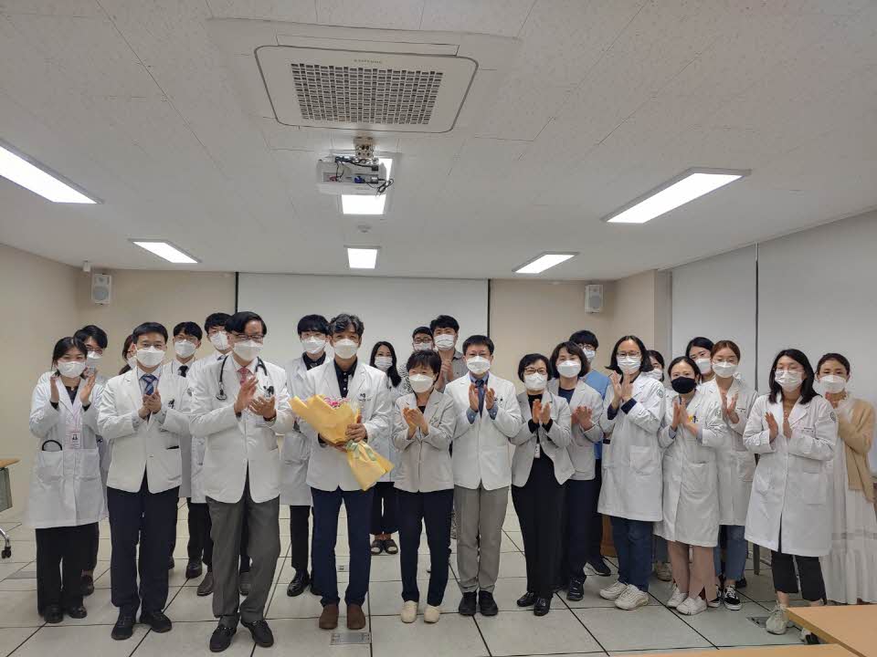 응급의학과 류현호 교수님 초청 세미나 일시: 2021년 5월 4일 (화) 오후 5시 장소: 의대 2호관 5층 세미나실 혈액내과 류현호 교수님께서 심장정지 환자 결과 향상을 위한 지역사회 중재' 에 관하여 명강의해 주셨습니다.