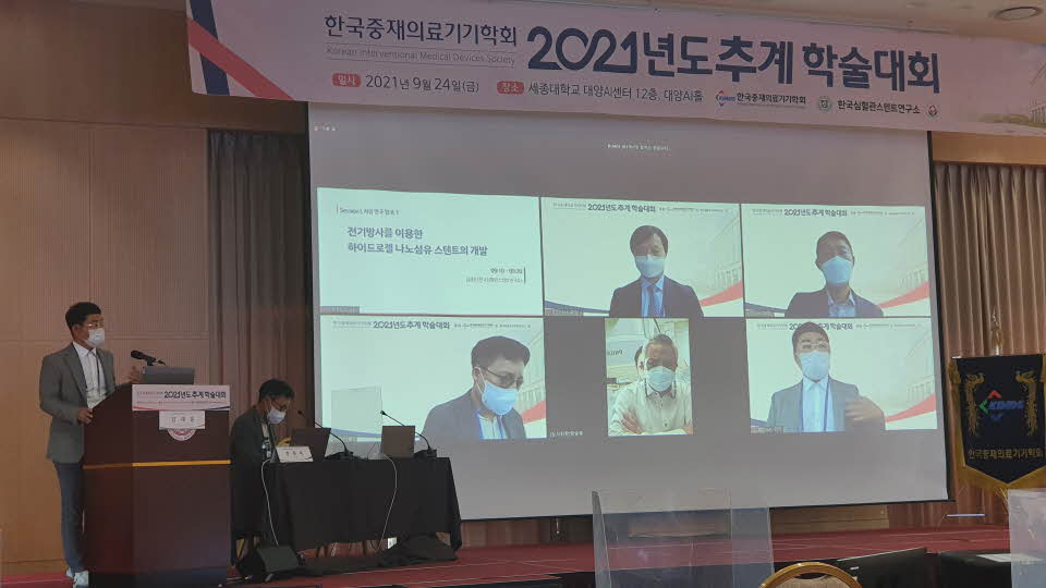 2021 한국중재의료기기학회 추계학술대회 일시: 2021년 9월 24일 (금) 장소: 서울 세종 대학교 연자: 김재운 자유연구발표: 전기방사를 이용한 하이드로젤 나노섬유 스텐트의 개발
